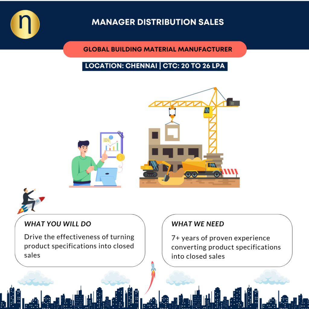 We are seeking a Distribution Sales Manager for a Building Material MNC. (Tamil Nadu & Sri Lanka)